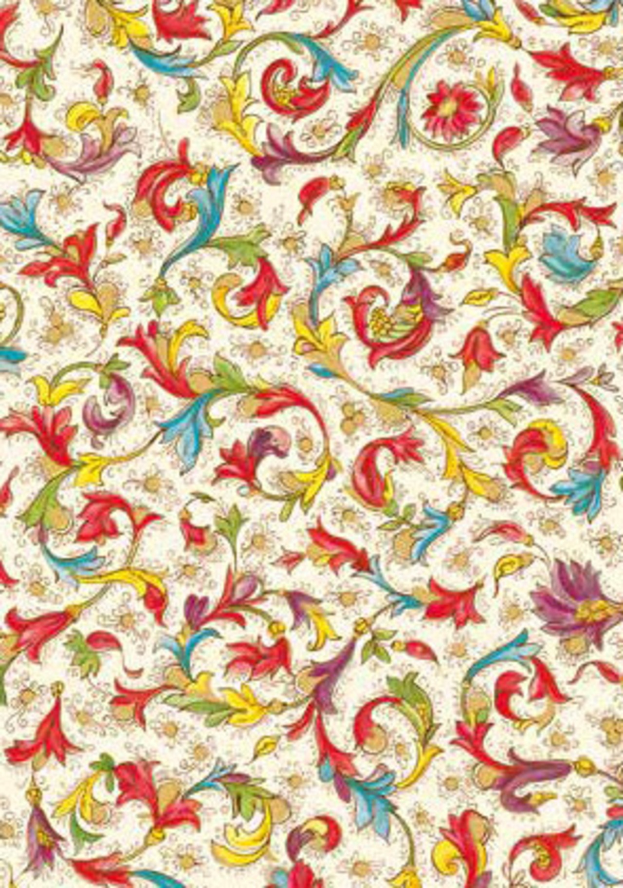 1955年創業のカルトスブランドの代表的な柄フロレンティア。気品あふれる伝統の柄をカラフルに美しく表現したラッピングペーパー。≪ゴールドパウダー使用≫